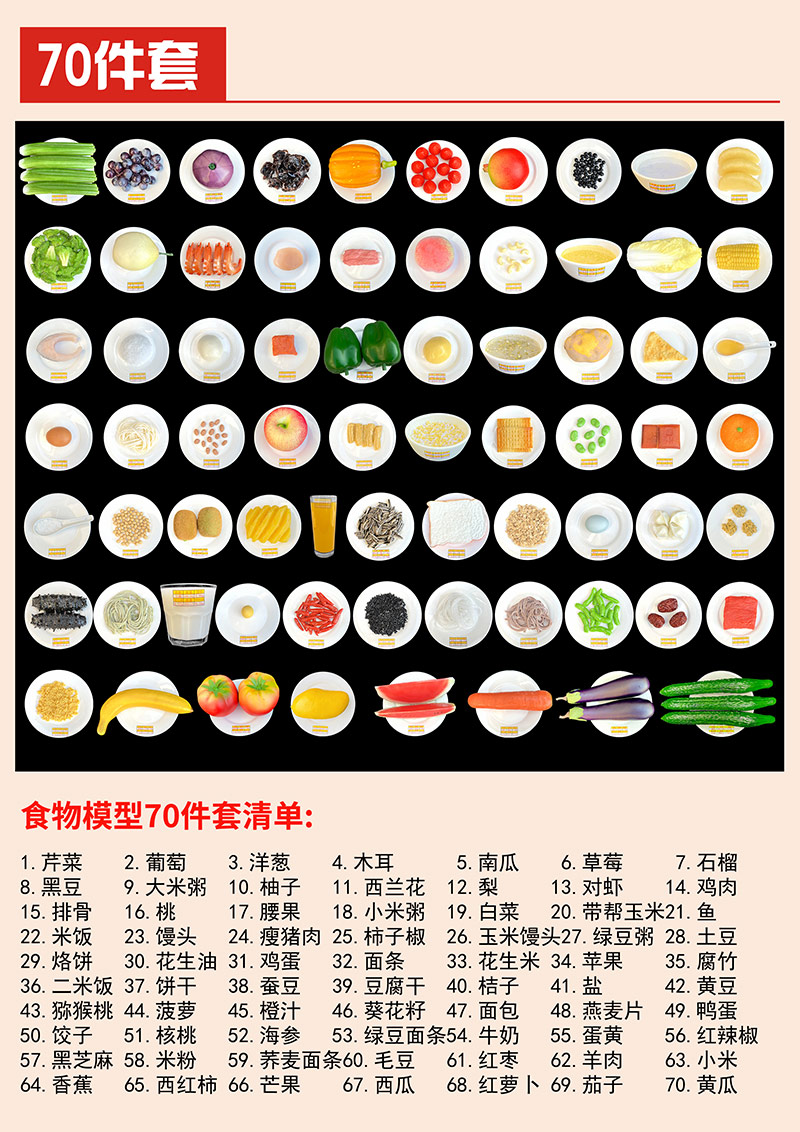 含70种90千卡标准食物交换份模型/2450元/套
